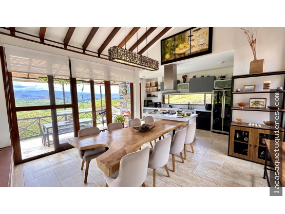 Increible casa en Villa de Leyva, conjunto Villa Valentín, etapa 3, casa con increible vista, 3 alcobas c/u con baño, vestier y balcón, estar de alcobas, sala-comedor (con gran terraza), cocina abierta, patio de ropas independiente, zon de BBQ, jacuzzi, kiosco con hamacas y fogata, pequeña quebrada con vegetación natural, 4 garajes, entrada con placa huella, 180 mts de construida, 3400 mts de lote, a tres kms de la plaza central, 21 lotes en el conjunto.