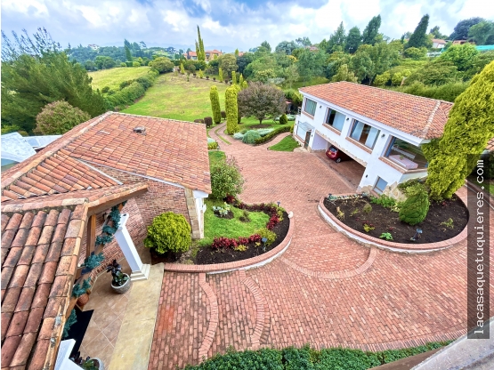 Increible casa en el mejor conjunto de Chia "SINDAMANOY", con espectacular vista a las motañas, con un amplio e impresionante terreno de 13.800 mts, rodeada de increibles jardines, terrazas, la casa consta de 3 niveles: Primero: sala-comedor independientes con salida a terraza con BBQ. gran cocina, patio de ropas, alcoba y baño de servicio, segundo nivel: estudio con chimenea, estar de alcobas, 2 alcobas c/u con baño, tercer nivel: habitación principal con balcón (increible vista) vestier y baño privado, esta casa consta de 600 mts, ademas tiene un apto con 2 baños, cocina y una alcoba, con 80 mts, un garaje cubierto para 5 carros, espacio para gimnasio.